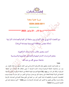 دور القضاء الإداري في خلق التوازن بين سلطة المراقبة والجماعات الترابية (حالة مجلس مقاطعة اليوسفية بجماعة الرباط) أحمد بنعمير طالب باحث بسلك الدكتوراه المنشورات ذات الصلة أبحاث و دراسات 21 ...